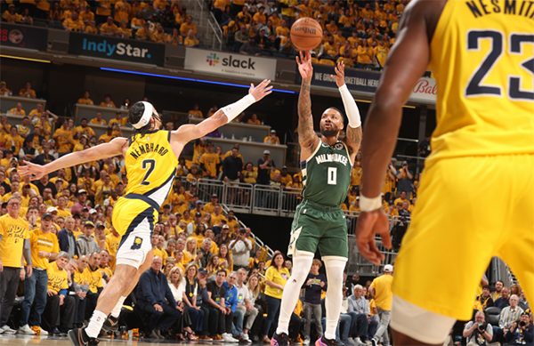 JRS直播网讯 北京时间4月27日,NBA季后赛雄鹿G3客场118-121惜败步行者,系列赛总比分变成1-2,字母哥继续伤停,利拉德全场20投6中、三分12中4拿到28分7助攻3抢断,膝伤影响手感,无缘19分大逆转,米德尔顿42分10篮板5助攻,末节和加时两次命中绝平三分仍遭绝杀,哈利伯顿18分16助攻10篮板带领球队捍卫主场。