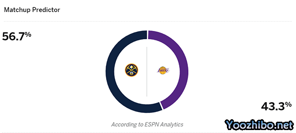 根据赛程,湖人和掘金G4将在明天上午8点30分开打,ESPN预测两队G4胜率——湖人43.3%,掘金56.7%,换言之,美媒看好掘金拿下G4,也就是看好掘金4-0横扫湖人。