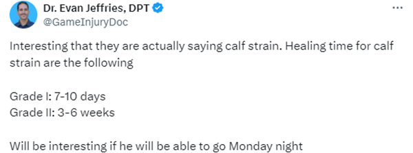 对于穆雷的伤情,医学专家Evan Jeffries表示穆雷小腿一级拉伤缺席7-10天,二级拉伤缺席3-6周,若G5出战将会很有趣。