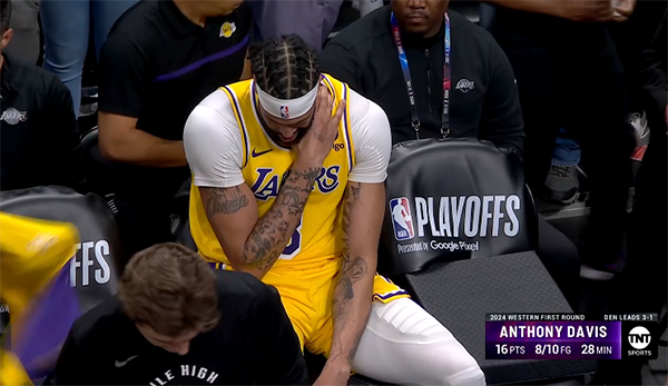 JRS直播网讯 北京时间4月30日,NBA季后赛湖人和掘金G5正式开打,第三节湖人球星浓眉突然受伤,倒地不起十分痛苦,詹姆斯、哈姆都是十分担忧。