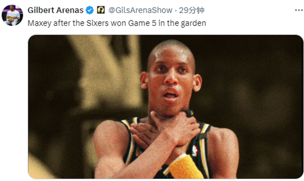 前NBA球员伊格达拉发推怒赞:这就是马克西;NBA名宿阿里纳斯更新了推特,晒出了一张雷吉-米勒的照片,写道:在广场花园球馆杀死比赛的泰雷斯-马克西。