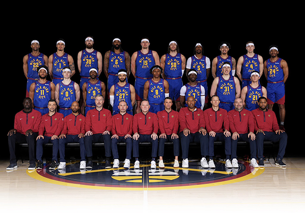第二排依次站着布拉克斯顿-基、布劳恩、贾斯汀-霍勒迪、穆雷、沃特森、雷吉-杰克逊、钱查尔和吉莱斯皮;第三排依次站着纳吉、小波特、杰-胡夫、小乔丹、约基奇、戈登、波普、斯特劳瑟、泰森和皮克特。