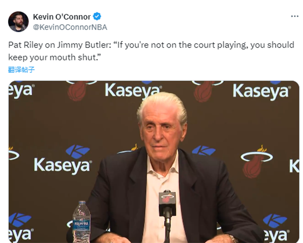 JRS直播网讯 北京时间5月7日,热火总裁帕特-莱利回应一系列与巴特勒有关的话题,公开表态现在不会交易巴特勒,球队还未考虑与他续约,莱利还回应巴特勒的争议言论:没上场打就闭嘴。