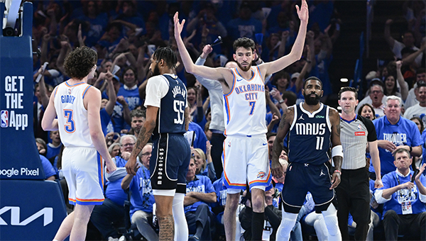 JRS直播网讯 NBA西部半决赛,雷霆VS独行侠的系列赛G1结束争夺,最终主场作战的雷霆取得胜利,击败拥有欧文和东契奇的独行侠。比赛的第四节,雷霆打出一波流扩大优势,锁定胜局,提前进入到垃圾时间。此役东契奇的欧文空砍20分,东契奇19中6,只有19分,表现低迷。雷霆的霍姆格伦19分7篮板,亚历山大29分9篮板9助攻。