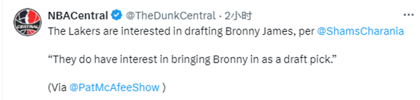 湖人的休赛期早已到来,今夏詹姆斯将决定是否执行球员选项以及是否继续为湖人效力,据名记shams重申,勒布朗想要再多打两个赛季,而很显然,湖人也非常愿意和他续约。并且,消息人士透露,湖人确实也有意在选秀中选择布朗尼。