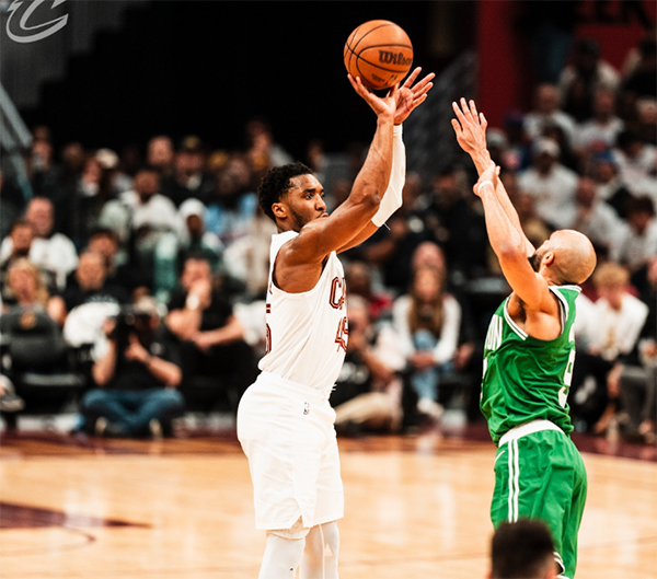 第二节,米切尔上场后继续砍分,点名霍福德轰进三分,单挑晃得豪瑟趔趄并且命中撤步三分,单挑怀特同样轰进不讲理三分,再加上突破抛投2+1,米切尔单节4中4独砍12分,防守端生断塔图姆,可米切尔双拳难敌四手,半场轰下23分,骑士仍落后9分。