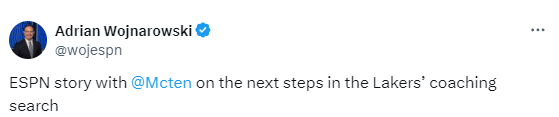 选帅工作预计将分阶段进行,首先是第一轮,然后是与湖人有更多合作历史的教练进行一段时间的交谈,然后将名单缩减到最后一轮候选人。