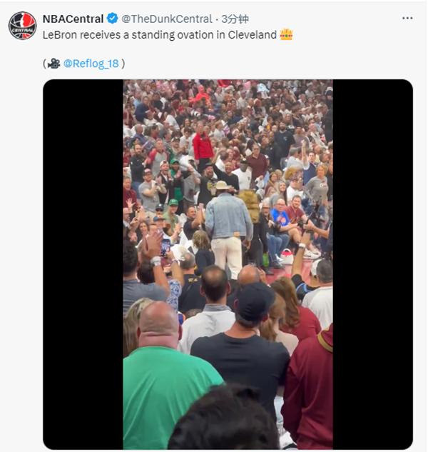 暂停期间,骑士为詹姆斯播放其身穿骑士战袍的集锦以及带队夺得队史首冠的画面,现场再次沸腾呐喊,老詹挥手示意以及送飞吻表达谢意。