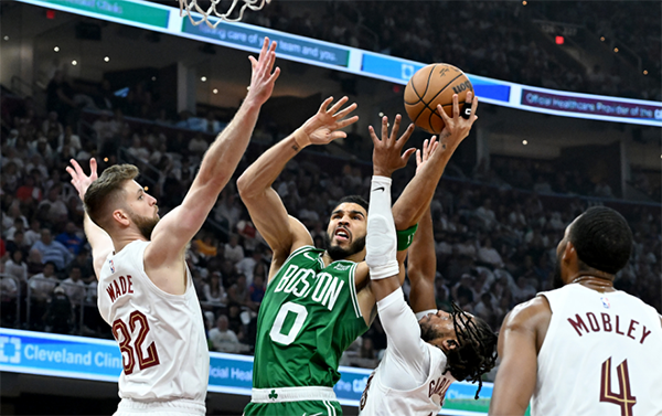 JRS直播网讯 北京时间5月14日,NBA东部半决赛凯尔特人G4客场再次击败骑士,总比分3-1夺赛点;米切尔因小腿拉伤而缺席,塔图姆全场25投11中拿到33分11篮板5助攻2抢断,首节爆发独砍16分,布朗全场27分8篮板,制胜三分打得詹姆斯提前离场,双探花带队夺赛点,距离东决仅差一胜;詹姆斯现身克利夫兰观战,骑士仍输掉关键一战。