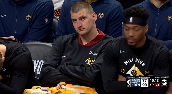 末节森林狼继续追分,约基奇上场后波普连中三分,约基奇反击暴扣,掘金一波8-0瞬间领先到18分,森林狼继续抵抗仍无济于事,约基奇带队牢牢掌控时间,3分09秒约基奇迎着戈贝尔命中不讲理三分球,穆雷连续得分,最终掘金稳稳赢球拿下赛点。