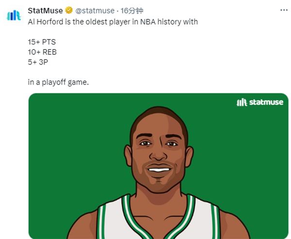 1、霍福德成为了NBA历史上在季后赛单场砍下至少20分15篮板5记三分的最年长球员。