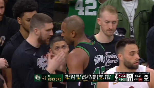 G5晋级之战,凯尔特人上半场58-52领先6分,霍福德8中3拿到9分3篮板2助攻,防守端送出3次盖帽;第三节,霍福德在绿军拉开分差期间贡献5分;末节面对骑士的反扑,霍福德连得5分助绿军重新拉开分差,终场前55.5秒,霍福德命中正面三分直接杀死比赛,老探花握拳怒吼疯狂庆祝,霍福德提前打卡,全场球迷为他高呼MVP。