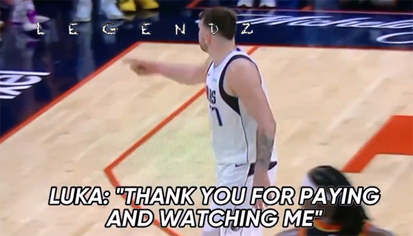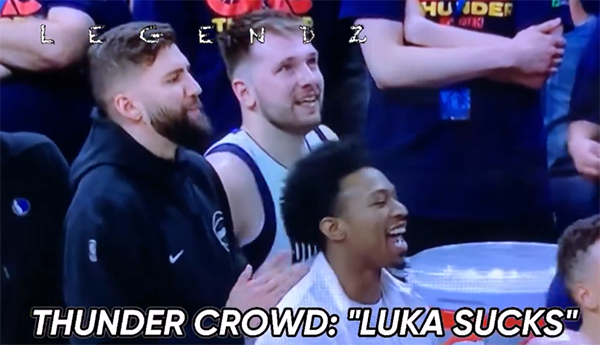 东契奇摊手后与华盛顿庆祝,之后东契奇冲着雷霆球迷高呼:感谢你们花钱来看我打比赛;现场又响起“卢卡糟透了”的骂声,东契奇用摇拳庆祝的方式继续回应。
