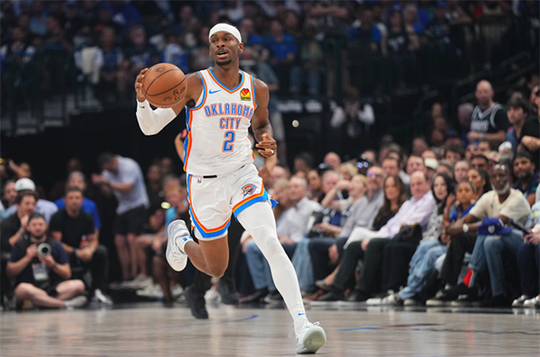 第二节,亚历山大狂秀招牌中投,单挑约什-格林高难度翻身后仰命中还造犯规,SGA直接躺在地板上庆祝,带队领先到11分;之后雷霆断电被独行侠打出15-2的反击高潮,雷霆被反超后亚历山大再次砍分,中投无解,外线三分一击即中,SGA带队不到5分钟打出24-6的超级攻势,雷霆半场领先16分。