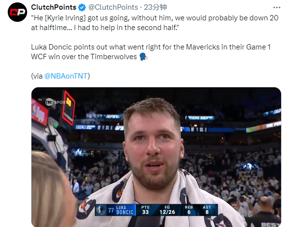 谈到自己进入末节比赛时的心态,东契奇表示:我只是对自己说,我们必须赢得这场比赛,我得做得更好,因为前三节我打得不好,所以我只是需要第四节找到了自己的位置,然后带领球队拿下比赛!