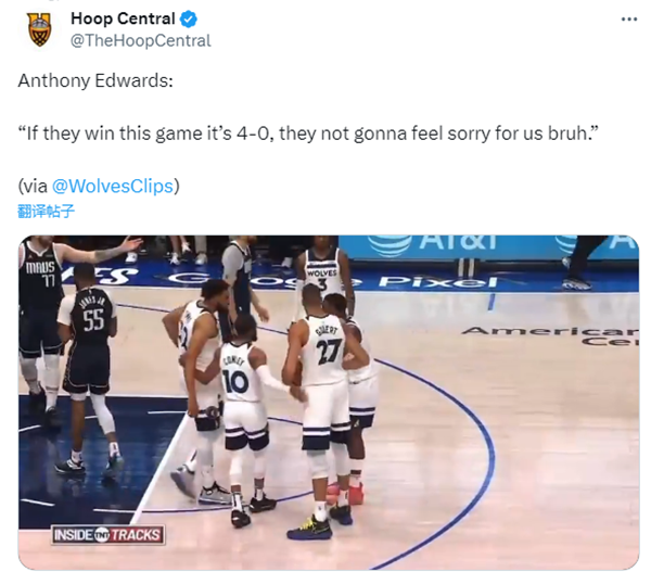 JRS直播网讯 北京时间5月29日,NBA西决G4森林狼客场105-100险胜独行侠,总比分1-3拒绝横扫,爱德华兹全场25投11中拿到29分10篮板9助攻,38.8秒关键中投立大功;华子训话一幕曝光,直言被横扫的话没人为他们难过;赛后借用乔丹名言直言从未被横扫,并把比赛视为个人恩怨。