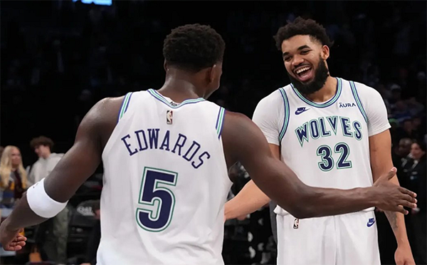 季后赛面对太阳,对手拥有杜兰特这样的历史级巨星,还有比尔和布克,三巨头压阵,最终爱德华兹大发神威,唐斯、戈贝尔也有很好的表现,他们以4-0横扫对手,赢下系列赛的过程荡气回肠,令人看到了这支球队冲击好成绩的希望。