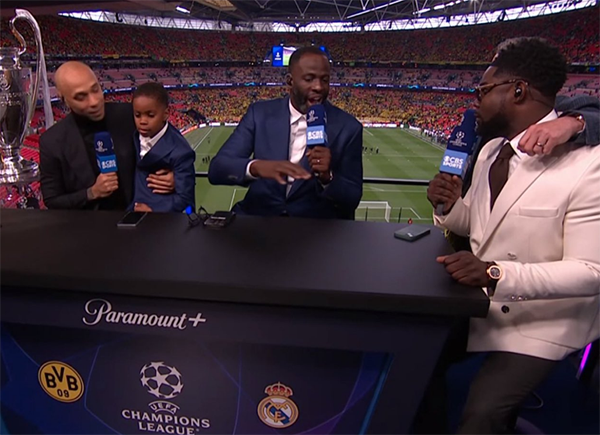 最近一段时间,追梦很忙,不仅担任评论员解说西决比赛,而且跨界跑去解说欧冠决赛;值得一提的是,恩比德也受邀担至欧冠决赛现场担任解说嘉宾,与利物浦名宿卡拉格搞怪比身高。