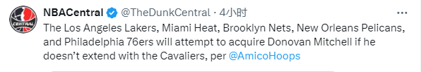 除了选帅之外,湖人计划追求第三球星,据NBA记者Sam Amico报道,如果多诺万-米切尔不与骑士队续约,洛杉矶湖人队、迈阿密热火队、布鲁克林篮网队、新奥尔良鹈鹕队和费城 76 人队都将试图通过交易得到他。