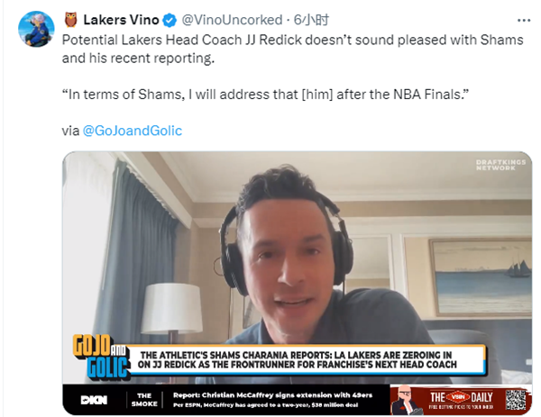 此前shams报道,预计湖人将在总决赛结束后正式宣布聘请雷迪克担任主教练,对此,雷迪克本人表示:我现在关注的重点是总决赛。我很幸运能在这个位置,能够和两个小伙伴预测总决赛。而就Shams的报道而言,那些将在赛季结束后得到解决。