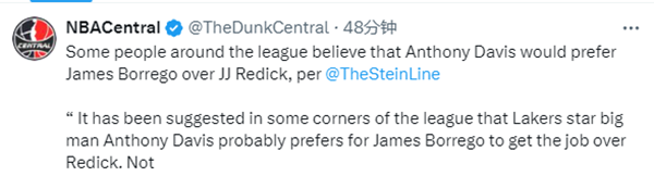 但名记stein报道浓眉更想让博雷戈担任主帅。