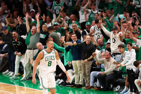波尔津吉斯首节上场7分钟,5中4独砍11分3篮板2盖帽,大帽欧文太狠,攻防一体,一人得分等于东欧两人总和;名嘴Skip直言:这场比赛结束了,波尔津吉斯总决赛MVP;东欧第一节12中5拿到11分;而且绿军全队第一节命中7记三分球,早早拉开分差。