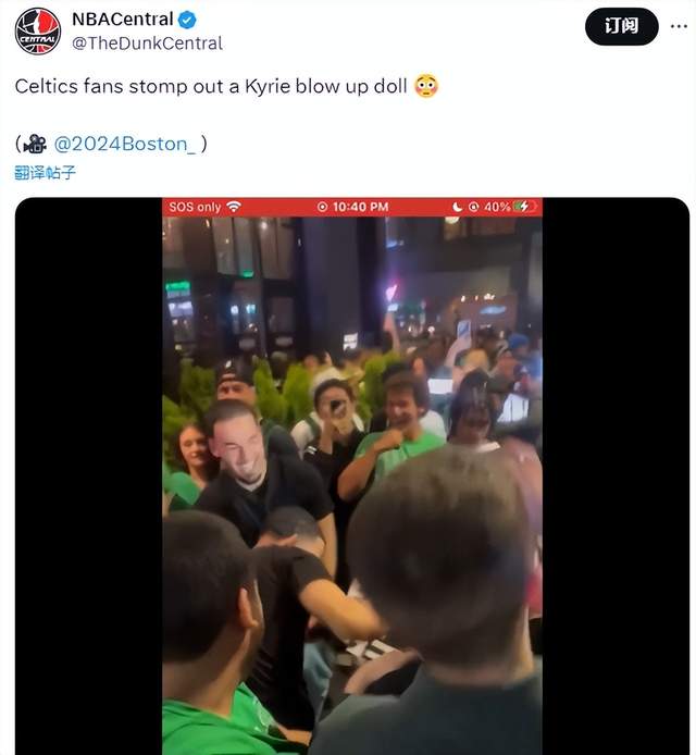 从现场的视频来看,部分绿军球迷拿着欧文的仿真娃娃,随后将仿真娃娃直接抛到空中,球迷们争先恐后对他进行击打。随后,等到仿真娃娃落地,球迷直接上前狠踩,场面非常热闹,不少人拿出手机进行拍照录像。从这样的场面也可以看出,凯尔特人球迷对于欧文的敌意到底有多深。