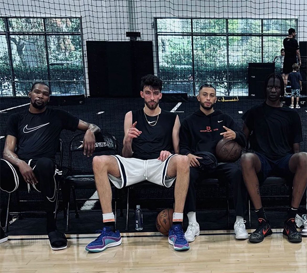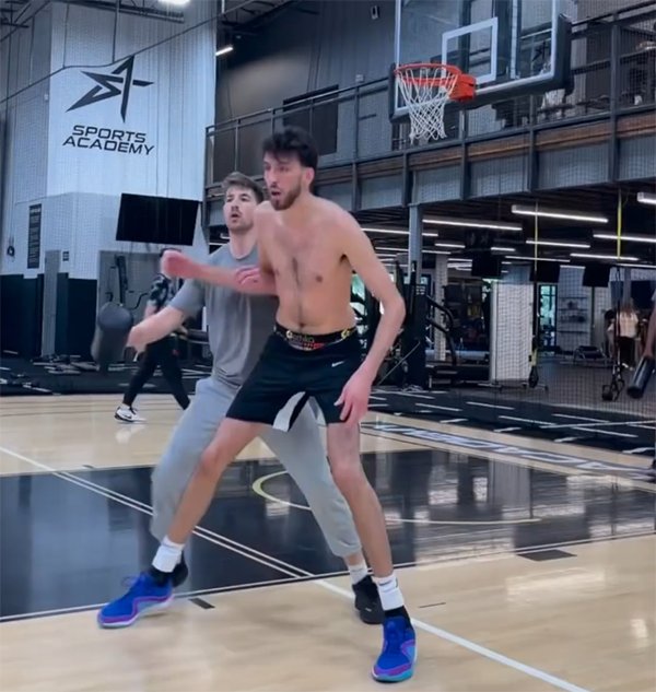 杜兰特身穿美国男篮训练服现身球馆,面对训练师的防守,KD用招牌后仰跳投把球打进;霍姆格伦赤膊训练并且突到篮下轻松得分;波尔-波尔则是依靠身高和臂展强硬得分。