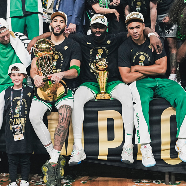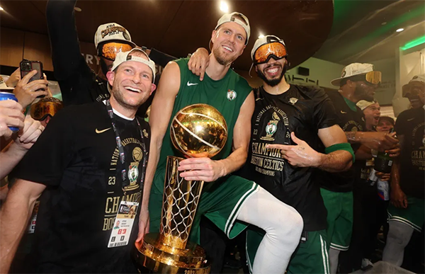 JRS直播网讯 足足等了16年,凯尔特人终于再次捧起总冠军奖杯,夺得队史第18座总冠军;塔图姆掩面哭泣,布朗获FMVP疯狂庆祝,在更衣室中绿军众将抽雪茄、喷洒香槟庆祝夺冠。
