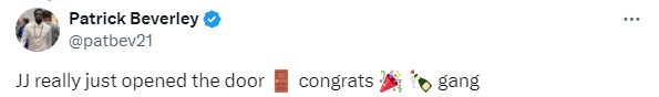 湖人旧将贝弗利发推:JJ-雷迪克真的打开了大门,恭喜你,伙计。