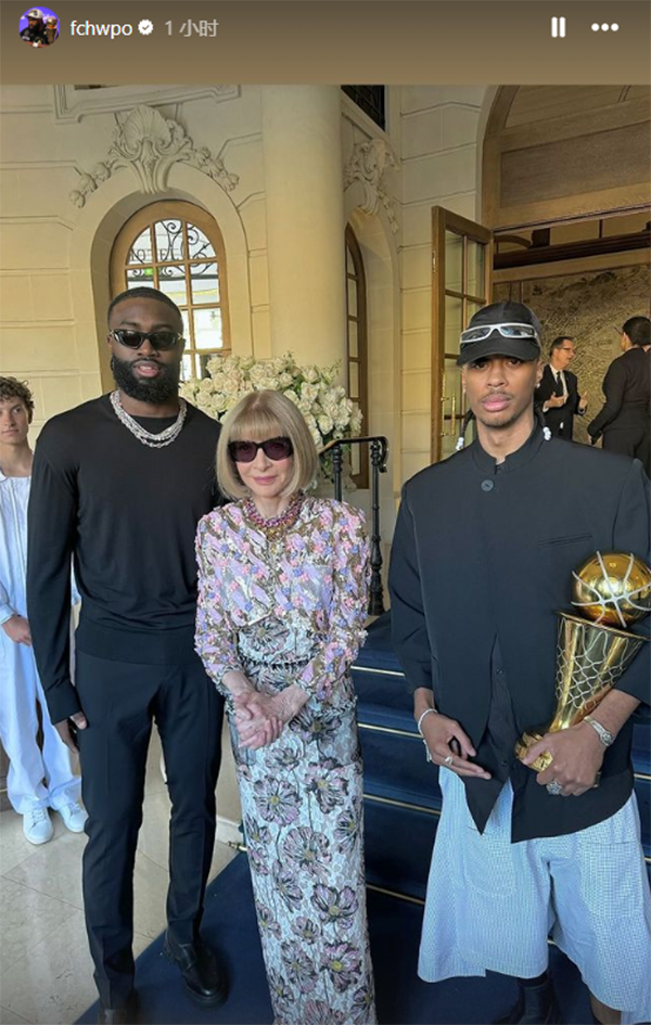 JRS直播网讯 北京时间6月24日,新科FMVP杰伦-布朗更换社媒头像,现身巴黎参加活动,满脸笑容太开心,并且与75岁时尚女王合影留念。