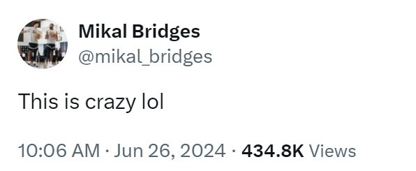 大交易之后,布里奇斯更推道:这很疯狂哈哈哈。