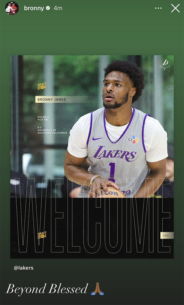 NBA名宿魔术师约翰逊更推道:“恭喜布朗尼-詹姆斯被湖人选中。这是一个历史性的时刻,因为勒布朗和布朗尼是NBA历史上第一对同时在同一支球队打球的父子。看布朗尼穿湖人球衣打夏季联赛将是必看节目