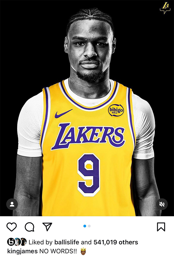詹姆斯转发湖人官宣布朗尼穿9号的消息,配文:999(8个火的表情);老詹还转发更新Ins,晒照并且写道:无需多言!!年轻的国王。