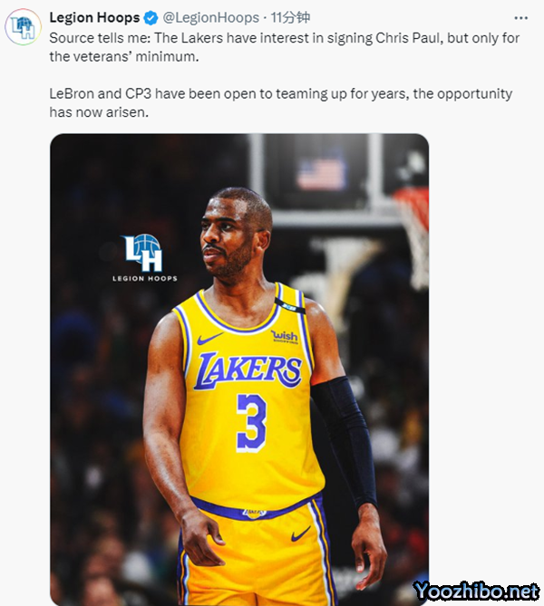 据报道,洛杉矶湖人和快船队都有意用底薪合同(1年330万美元)引援保罗,马刺也有意保罗;众所周知,保罗和詹姆斯的关系很好,快船则是保罗的前任东家。