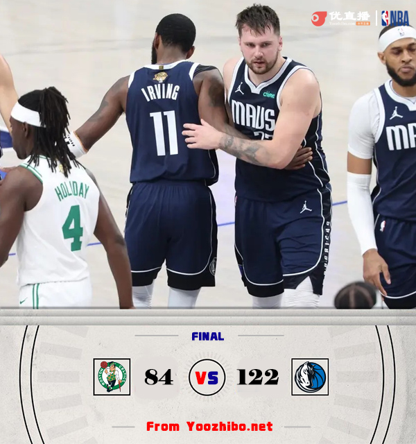 JRS直播网 6月15日讯 NBA总决赛G4,独行侠今日继续在主场迎战凯尔特人,双方前三战凯尔特人都取得胜利,目前大比分3-0领先获得冠军点,独行侠则是身处绝境。比赛上来,独行侠先拿四分取得领先,虽然双探花连得七分实现反超,但整个第一节凯尔特人的进攻表现糟糕,独行侠利用一波10-0的小高潮将分差拉开到两位数,次节凯尔特人的进攻更差,单节只拿到14分,而东契奇则依旧是不可阻挡,半场结束时独行侠已经领先了26分;易边再战,凯尔特人还是无法限制对手的攻势,独行侠连续命中三分后分差突破了三十分,凯尔特人也是在三节末段换下主力,末节比赛已经彻底沦为垃圾时间,最终独行侠大胜凯尔特人,大比分追至1-3拒绝横扫。