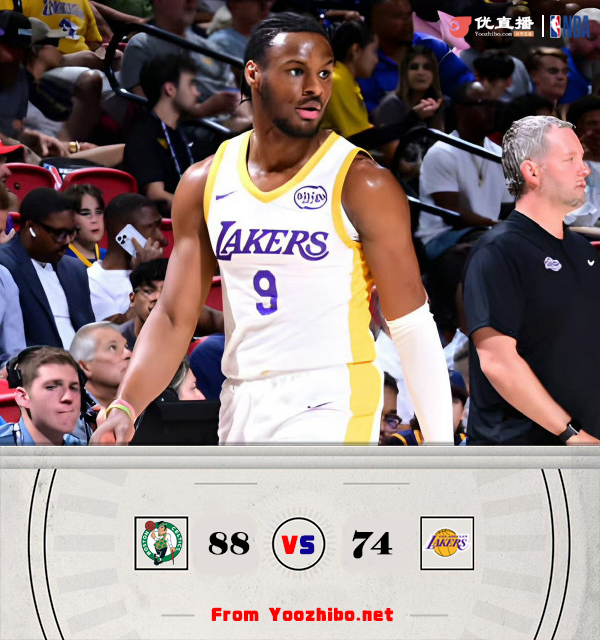 JRS直播网7月16日讯 NBA夏季联赛迎来湖凯大战,布朗尼和克内克特领衔出战,凯尔特人这边,去年的次轮秀沃尔什和中锋科塔在列。首节开打后凯尔特人率先发力,科塔连续空接炸筐率队轰出11-2开局,中段湖人逐渐找到节奏,克内克特连续取分率队回敬11-3攻击波,首节结束时凯尔特人领先2分,次节回来,布朗尼防守端1防4送出遮天大帽,但三分仍未开张,凯尔特人内外开花再次拉开比分,半场战罢,凯尔特人确立16分优势。易边再战后凯尔特人进攻火力放缓,但湖人手感冰凉未能抓住机会,双方分差始终维持在两位数,凯尔特人领先16分进入末节,末节上来,湖人进攻有所起色一度打停对手,布朗尼跳投斩获个人本场首分,但凯尔特人稳扎稳打总能给予回应,比赛提前失去悬念,最终凯尔特人88-74大胜送湖人夏联五连败。