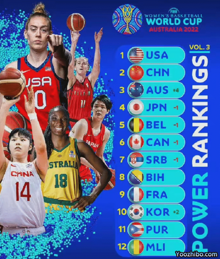 JRS直播网讯 北京时间8月23日,国际篮联FIBA公布了2022年女篮世界杯的最新实力榜。