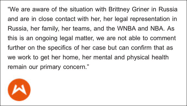 在美国篮协多次督促俄罗斯放人的时候,俄罗斯方面表示:放人是不可能的,因为案件正在进一步的审查中。而且俄罗斯方面也表示:如果最终证据确凿,别说放人了,布兰尼将面临长达10年的监禁。