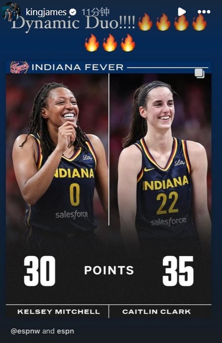 JRS直播网讯 北京时间9月16日,WNBA常规赛印第安纳狂热110-109险胜达拉斯飞翼,有着“女库里”之称的新科状元克拉克又打出精彩表现,全场出战36分钟,22投10中、三分14中6轰下35分8助攻2篮板3抢断,一战狂刷纪录,詹姆斯发声狂赞。