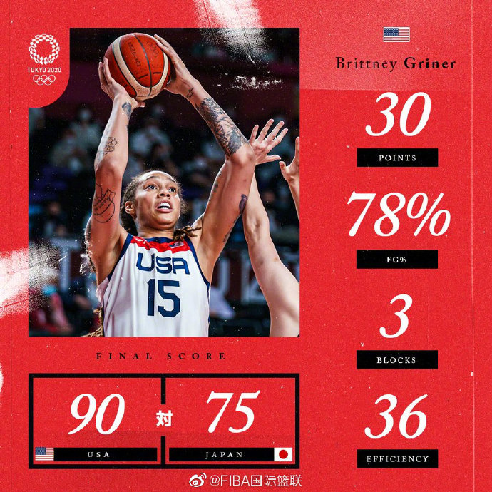 美国女篮:格里娜30分5板、斯图尔特14分14板5助、威尔逊19分7板5助、陶乐西7分8助、伯德7分、格雷6分4助