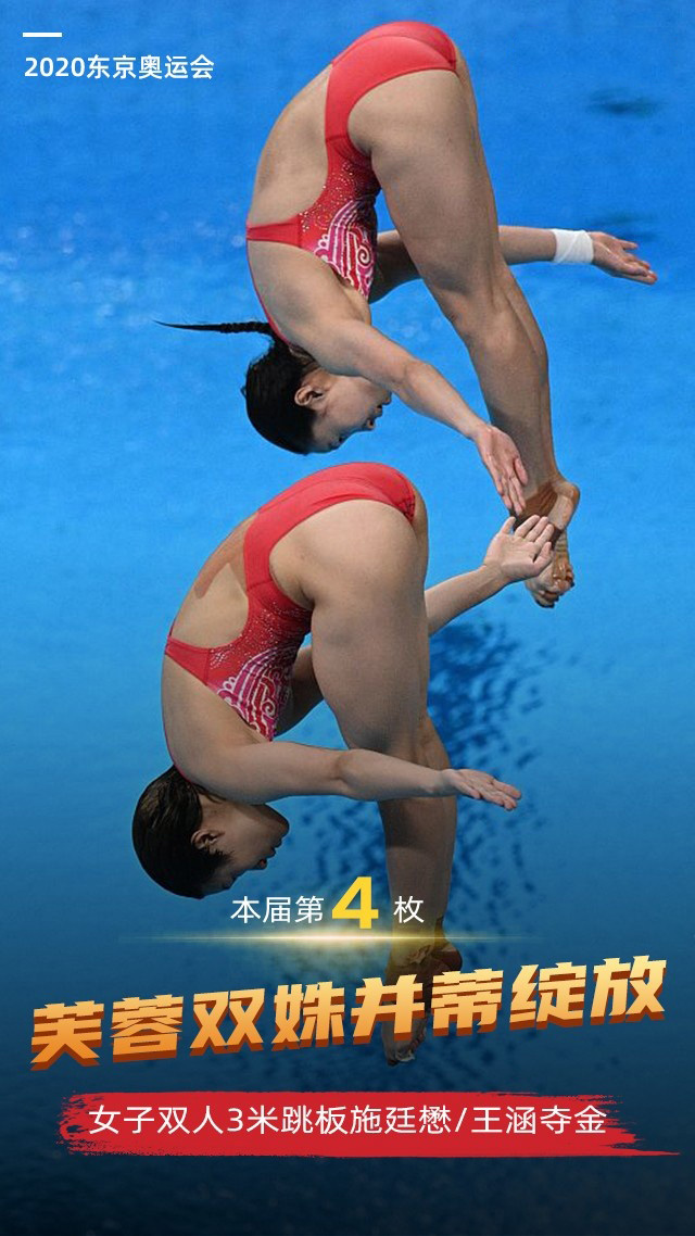 JRS直播网7月25日讯 东京奥运跳水比赛拉开帷幕,第一个项目女子双人三米板的争夺,施廷懋/王涵一路领先,五跳总成绩326.40分获得冠军,这也是中国代表队本届奥运会上获得的第四枚金牌,重回奖牌榜第一名。