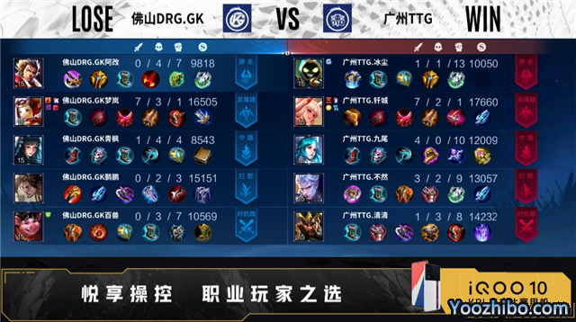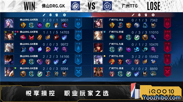 开局双方正常抢线。2分34秒广州TTG拿下暴君。2分53秒发育路广州TTG击杀马可波罗,拿下一血。3分34秒河道佛山DRG.GK击杀裴擒虎,打出0换2,拿下主宰。4分49秒野区佛山DRG.GK击杀东皇太一,打出0换2。5分24秒野区广州TTG击杀镜,对抗路击杀马可波罗,摧毁敌方发育路外塔、对抗路外塔。6分50秒广州TTG拿下暴君。7分27秒对抗路广州TTG击杀马可波罗,摧毁敌方对抗路二塔。8分42秒野区广州TTG击杀镜,打出1换1,广州TTG拿下主宰。9分41秒佛山DRG.GK摧毁敌方发育路外塔、对抗路外塔。10分27秒对抗路广州TTG击杀夏侯惇,打出0换2,拿下暗影主宰,摧毁敌方中路外塔、中路二塔。11分12秒中路佛山DRG.GK击杀东皇太一,广州TTG拿下暗影暴君。13分14秒广州TTG摧毁敌方发育路二塔,14分35秒广州TTG拿下暗影主宰。15分33秒发育路佛山DRG.GK击杀东皇太一,双方打出1换1,广州TTG拿下暗影暴君。16分37秒野区广州TTG击杀夏侯惇,沈梦溪二连击破,打出2换4,摧毁敌方中路高地、发育路高地。18分24秒广州TTG拿下暗影主宰。20分15秒野区佛山DRG.GK击杀东皇太一,打出0换2。21分05秒佛山DRG.GK摧毁敌方中路外塔,拿下风暴龙王。22分41秒佛山DRG.GK摧毁敌方中路二塔、发育路二塔。23分23秒发育路佛山DRG.GK击杀东皇太一,摧毁敌方对抗路二塔。24分45秒中路佛山DRG.GK击杀猪八戒,广州TTG孙尚香二连击破,打出2换2,广州TTG拿下风暴龙王。26分48秒广州TTG摧毁水晶拿下比赛。