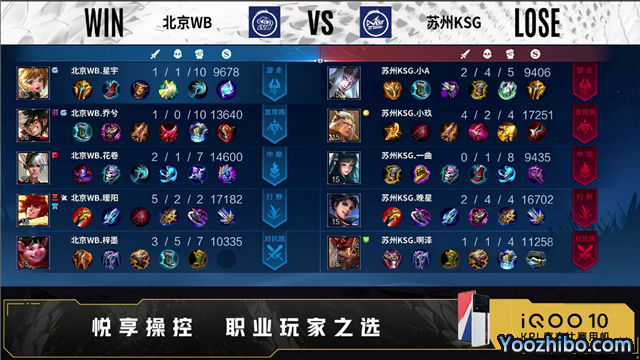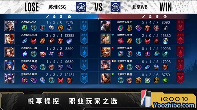 第五局开局北京WB成功反掉敌方蓝Buff。3分22秒苏州KSG拿下暴君。3分43秒北京WB拿下先知主宰。4分39秒北京WB摧毁敌方发育路外塔。5分32秒双方对抗路打出1换1。5分50秒北京WB摧毁敌方对抗路外塔。6分14秒北京WB野区击杀东皇太一。7分25秒北京WB摧毁敌方对抗路二塔。7分39秒北京WB摧毁敌方中路外塔。8分24秒北京WB拿下暴君。9分12秒北京WB摧毁敌方发育路二塔,发育路团北京WB打出1换2。9分45秒北京WB摧毁敌方中路高地塔。10分34秒北京WB拿下暗影暴君。12分钟苏州KSG高地处击杀猪八戒,北京WB摧毁敌方发育路高地塔。12分20秒高地团双方打野互换。14分28秒北京WB拿下暗影暴君。14分57秒北京WB拿下暗影主宰。15分15秒苏州KSG摧毁敌方发育路二塔。15分40秒高地团双方2换2。16分59秒中路团苏州KSG打出0换2。17分37秒苏州KSG摧毁敌方中路二塔。18分25秒北京WB拿下暗影暴君。19分13秒北京WB拿下暗影主宰。20分58秒北京WB拿下风暴龙王。21分50秒高地团北京WB打出1换4。21分58秒北京WB摧毁敌方水晶拿下比赛。