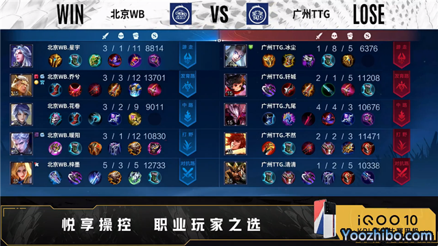 开局广州TTG入侵野区反掉蓝BUFF。2分33秒广州TTG拿下主宰。3分22秒北京WB拿下暴君。4分41秒北京WB摧毁敌方发育路外塔。5分40秒对抗路团战广州TTG打出1换2。6分24秒野区团战广州TTG打出0换2。6分48秒广州TTG摧毁敌方中路外塔。7分33秒广州TTG拿下暴君。8分04秒广州TTG野区击杀孙尚香。8分24秒北京WB中路击杀蒙恬。9分46秒北京WB对抗路击杀镜。10分43秒广州TTG拿下暗影暴君。11分18秒北京WB摧毁敌方发育路二塔。13分31秒北京WB摧毁敌方发育路高地塔,广州TTG击杀宫本武藏。14分 15秒广州TTG拿下暗影主宰。15分02秒北京WB抢到暗影暴君,团战双方2换2。15分50秒广州TTG中路打出0换2。16分27秒广州TTG打出1换4。16分33秒广州TTG摧毁敌方水晶拿下比赛。