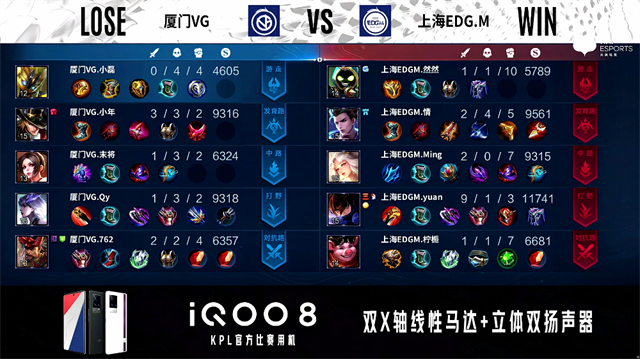 JRS直播网讯 9月30日2021年KPL秋季赛常规赛第二周第二日第三场,由厦门VG对阵上海EDG.M,以下是本场比赛快讯。