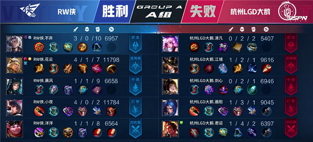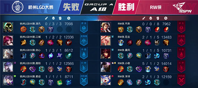 JRS直播网讯 5月28日2021KPL春季赛常规赛第十周第四日第三场,由A组的RW侠对阵杭州LGD大鹅,以下是本场比赛快讯。