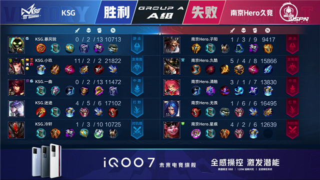 JRS直播网讯 5月9日2021KPL春季赛常规赛第七周第六日第一场比赛,由A组的南京Hero久竞对阵KSG,以下是本场比赛快讯。
