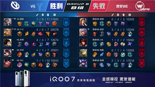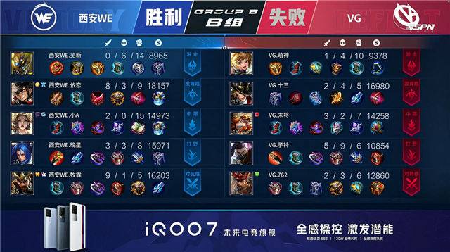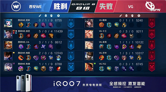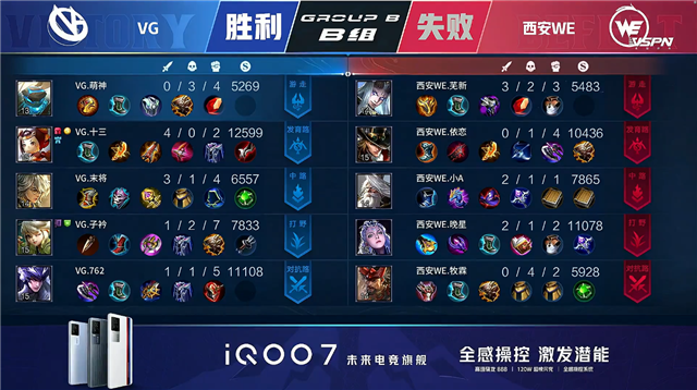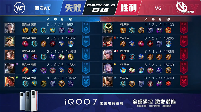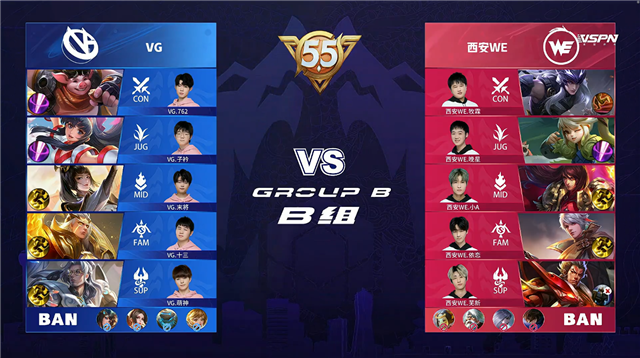 JRS直播网讯 5月7日2021KPL春季赛常规赛第七周第四日第一场比赛,由B组的西安WE对阵VG,以下是本场比赛快讯。