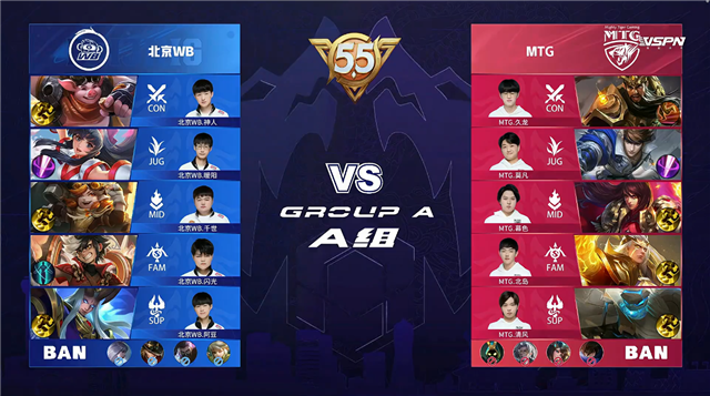 开局北京WB选择边路换线。1分08秒MTG拿下中路河道之灵。2分11秒MTG拿下暴君。2分21秒MTG下路击杀蔡文姬。2分47秒MTG中路下河道击杀西施。4分32秒MTG摧毁敌方下路外塔。5分56秒中路下河道团战双方1换1。6分40秒双方中路1换1。7分29秒北京WB拿下暴君。8分18秒MTG摧毁敌方下路二塔。10分10秒中路团战MTG击杀吕布。10分34秒MTG拿下暗影暴君。11分32秒北京WB上路击杀老夫子。14分05秒上路团战MTG击杀赵云。15分06秒野区团战北京WB打出0换3。16分44秒MTG拿下暗影主宰。18分34秒野区团战北京WB打出3换5,公孙离拿到四连超凡。20分50秒北京WB中路击杀虞姬。21分36秒北京WB拿下风暴龙王。23分50秒北京WB摧毁敌方中路高地塔。24分45秒中路团战双方1换1,MTG摧毁敌方下路高地塔。26分54秒龙王处团战MTG击杀吕布。27分33秒MTG拿下风暴龙王。28分44秒MTG强点敌方水晶拿下比赛。